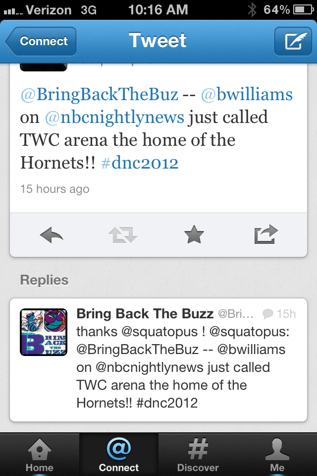 “Reporting live at the home of the Charlotte Hornets” (reporting for the 2012 Democratic National Convention)