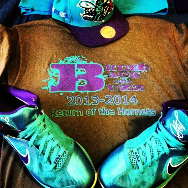 The shirts are a nice charcoal gray, adorned with the “Bring Back the buzz” logo on the front, and underneath the logo it says “2013-2014 Return of the Hornets”
