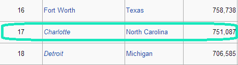 So what does this mean? It means that out of the 29 teams in the United States the Charlotte Bobcats would fall into the #12th spot in terms of population and that Charlotte is bigger than over half of the cities in the NBA with teams.