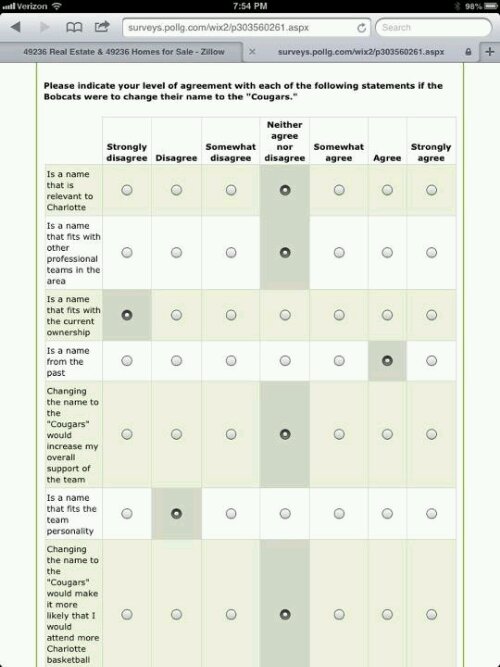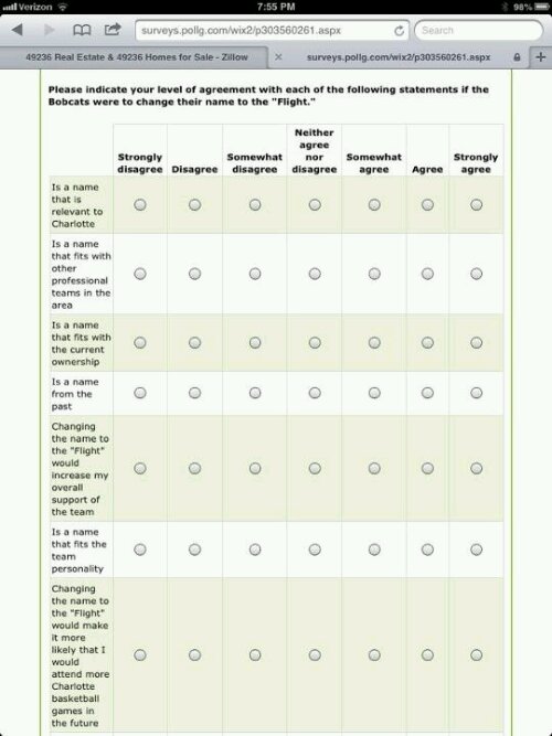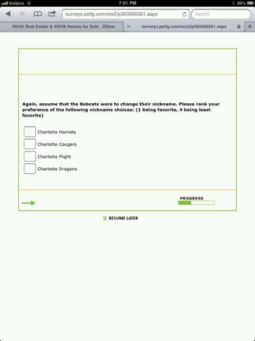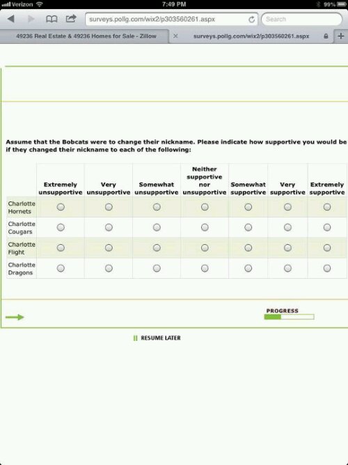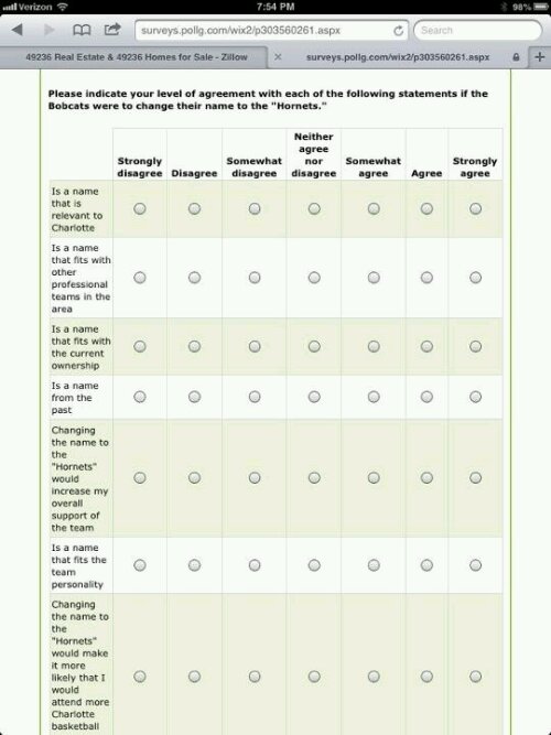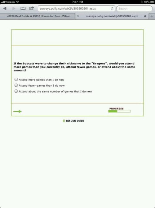 Yesterday a survey went out to the Season Ticket Holders of the Bobcats. Different from the past surveys this one was fully on a rebrand and asked hypothetically about different names if we were to switch! These pictures may be out of order BUT here is the full survey! 🙂