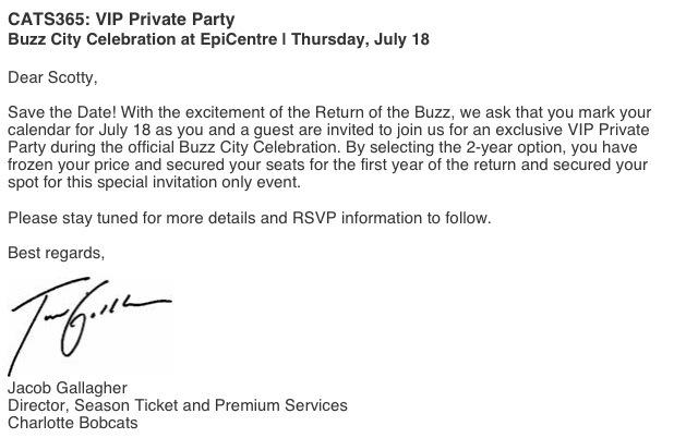 Seems like the Bobcats are very confident they will get the go ahead! They sent out this email