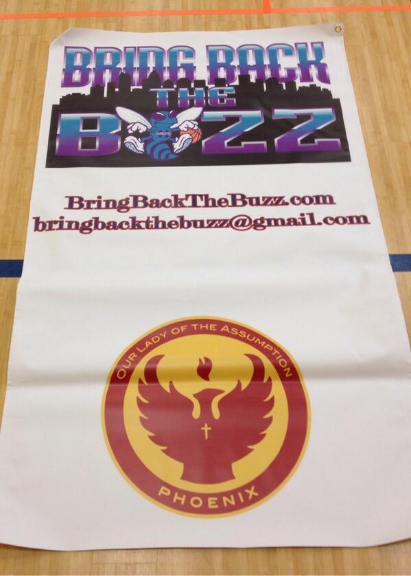 This banner will be hanging in the Gym! Hopefully it influences them to become the next generation of Hornets fans 😉