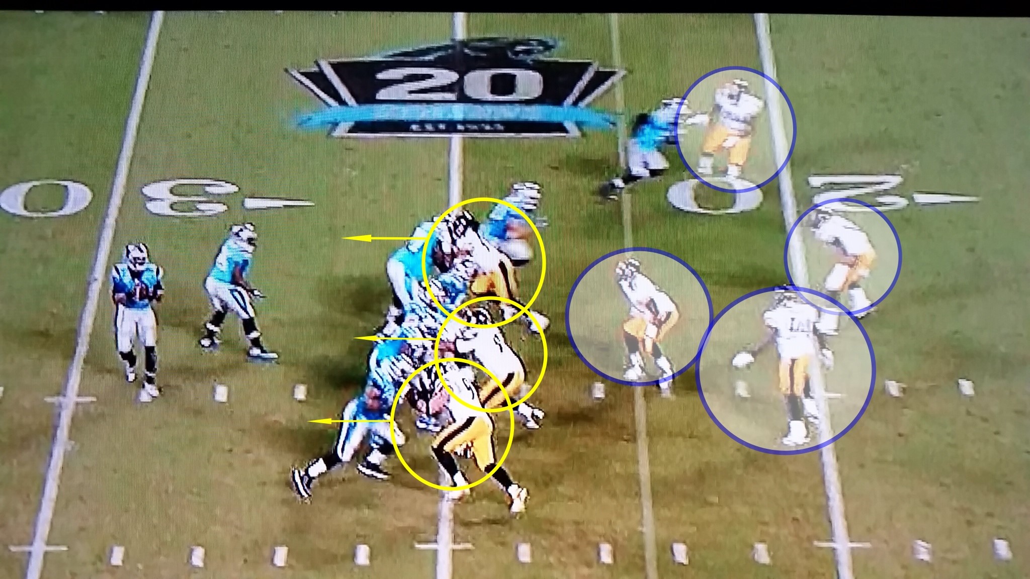 Pittsburgh’s executions of screens, draws, and off-tackle runs proved that they were well-prepared for this defense. They removed Carolina’s strongest asset from the game by giving it’s pass-rush few shots at the quarterback. They countered the aggressive nature of the defense by making it pay when it over-pursued. And they forced a talented linebacking core to try to play both run-gap responsibility and sideline help. Minus a few costly mistakes and 4th quarter fatigue, the Panthers defense played well – despite getting put in far too many compromising positions.