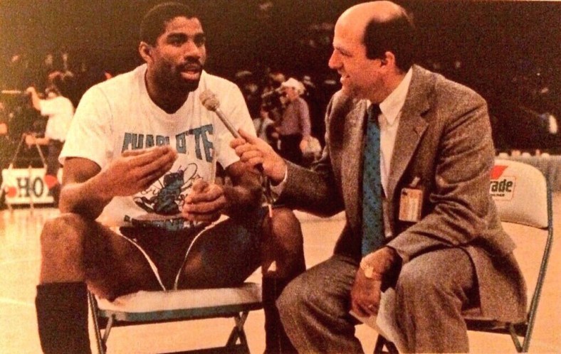 Let’s take a time machine back to March 10, 1989. It’s a Friday night in a very young Charlotte when nothing in town is more exciting than going to the Hive. The home team may only have 15 wins and a whopping 45 losses but it’s our team and the red hot Los Angeles Lakers are coming to town for the first time. This is our first chance to see super stars like Kareem Abdul-Jabbar, James Worthy and of course the incredible Magic Johnson.