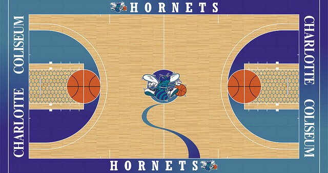 Considering the Hornets are releasing a 30 year anniversary court for the upcoming season let’s take a trip down memory lane and look at the courts over the years that we have watched the Men of Teal march into battle on. (Including the Bobcats)