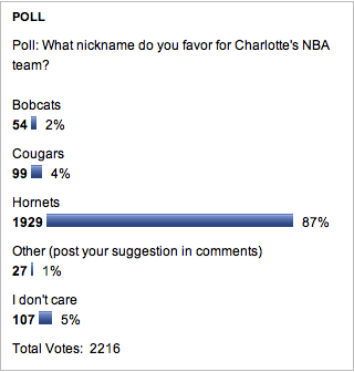 We asked this question a while back to our followers and got a resounding “NO” with a few “yes” from some of the South Carolinians supporters. Now that we a little larger fan base we like to reintroduce the question of whether or not you would prefer the NBA franchise in Charlotte to be called the Charlotte Hornets or switch things up and hope for larger fan support with the Carolina Hornets?